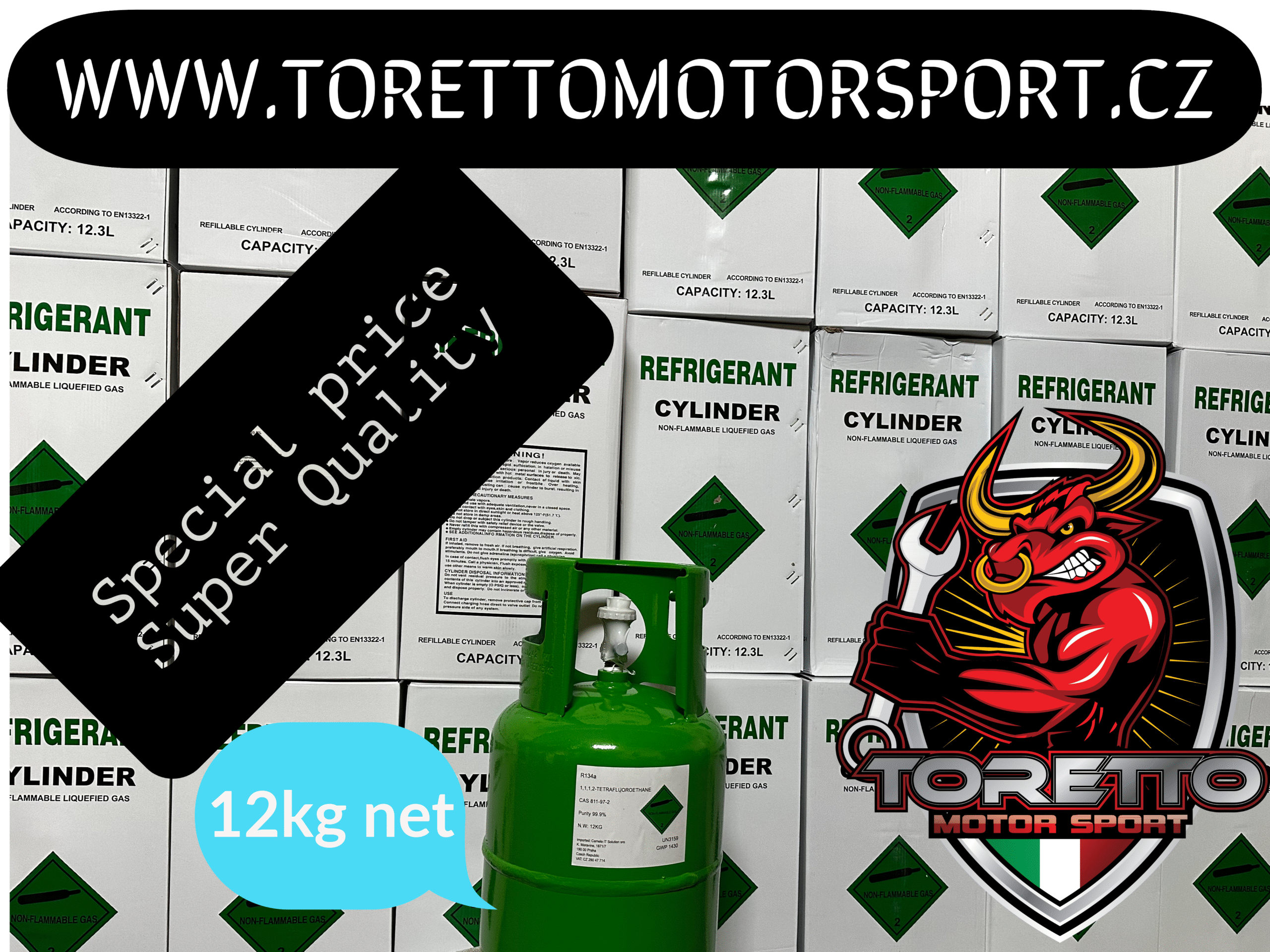 Réfrigérant Freon R134a – Bouteille de 12kg avec valve SAE 1/4″ | Certifié T-PED | UN 3159